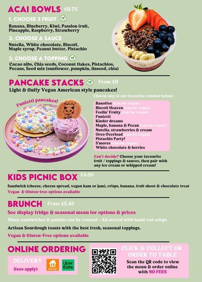 Our pancakes are cooked freshly to order using our own delicious and fully vegan recipe. They are piled high and topped with your luxury ice cream, sauces and desserts toppings. Choose one of our favourites from the menu or Create your own from the endless options. Can be made fully vegan!